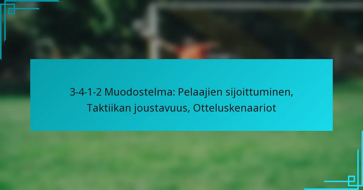 3-4-1-2 -muotoilu on jalkapallon taktinen asettelu, joka yhdistää kolme keskuspuolustajaa, neljä keskikenttäpelaajaa, yhden hyökkäävän keskikenttäpelaajan ja kaksi hyökkääjää. Tämä järjestely ei ainoastaan tarjoa puolustuksellista vakautta, vaan myös parantaa keskikentän hallintaa ja mahdollistaa nopeat siirtymät, mikä tekee siitä mukautuvan erilaisiin ottelutilanteisiin. Joukkueet, jotka hyödyntävät tätä muotoilua, voivat tehokkaasti muuttaa strategioitaan vastustajan vahvuuksien ja heikkouksien mukaan.